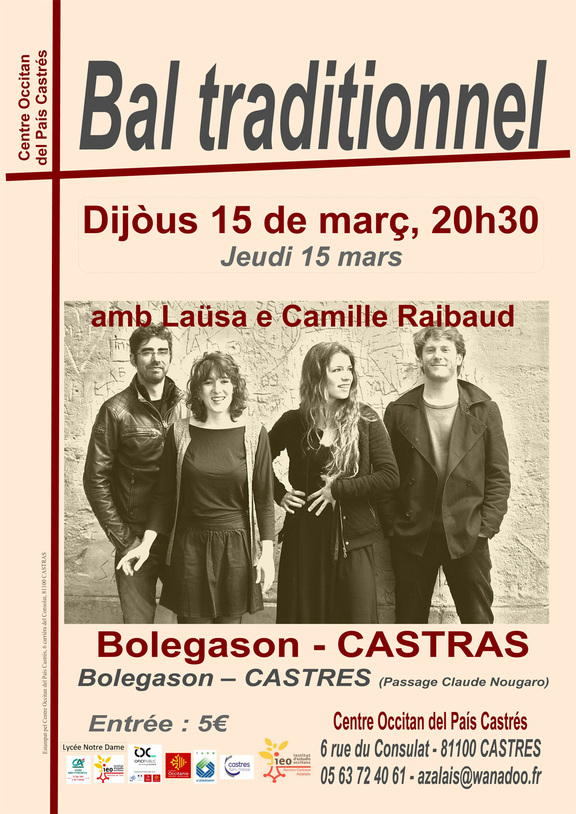En prolongement d'Escambis (rencontre de lycéens en occitan), le Centre Occitan del País Castrés vous propose un concert/bal ouvert à tous, avec le groupe Laüsa et Camille Raibaud.